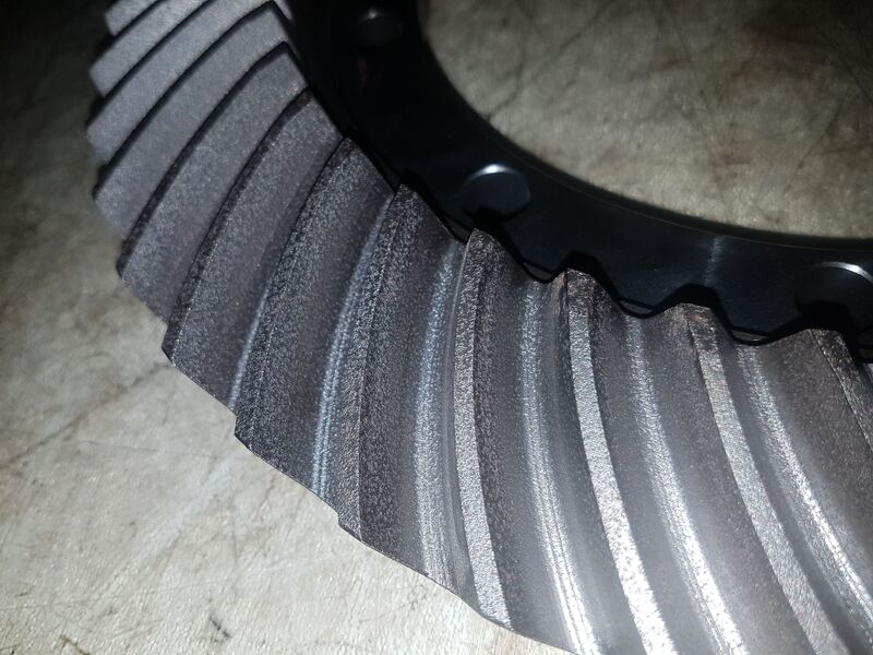 CROWN AND PINION 9 / 47T !!TEETH ARE SLIGHTLY DAMAGED BY RUST SEE PICTURES!! FITTED ON NEW HOLLAND DUAL CLUTCH T6.145 / T6.155 / T6.165. / T6.175 / 180